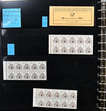 Berlin, Sehenswürdigkeiten-Markenheftchen 14 per 37, davon sieben mit Zählbalken, sowie MH 15 zehnmal mit Zählbalken, je postrisch. Mi. 2400,-
