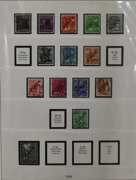 Berlin, 1948-1990, Sammlung, gemischt gesammelt, in zwei Lindner-T-Vordruckalben, dabei einige Anfänge wie diverse Schwarz- u. Rotaufdruck-Werte, Nr. 61/63, einige Glocken-Werte etc., ab ca. 1956 bis Ende häufig postfrisch u. zusätzlich gestempelt. Mi. 2000,- plus 400,- Euro für das neuwertige Zubehör