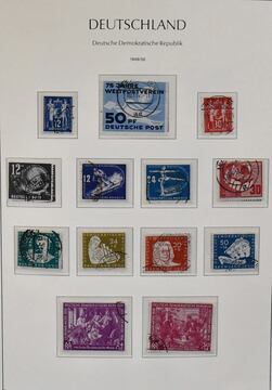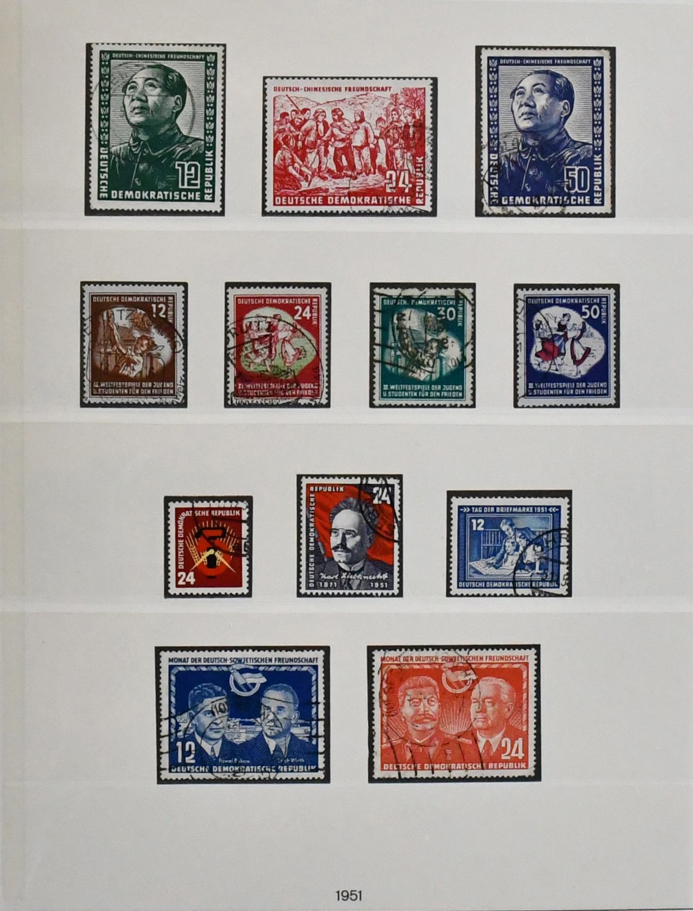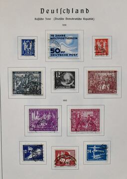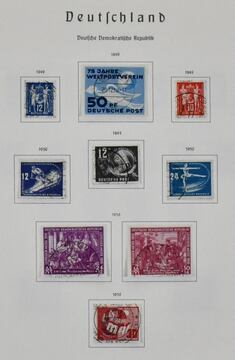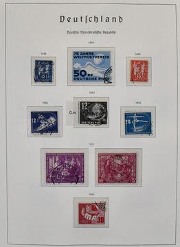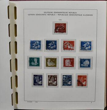 DDR, 1949/1990, gestempelte, umfangreiche Slg., bis auf einige Werte ex Nr. 327/41, in den Hauptnummern kpl. Dabei Nr. 261/70, 286/88, 80 Pfg. Persönlichkeiten auf Lackpapier, Bl. 7 auf FDC, Marx-Blöcke nur ungezähnt, Bl. 10/19 usw., in drei Schaubek-Vordruckalben. Mi., alles billigst als Gefälligkeitsentwertung gerechnet, bereits 4500,-