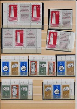DDR, Nr. 3265/66, Partie von sechs postfrischen Zwischensteg-Bogen (Mi. 300,-) und vier gest. Zwischensteg-Bogen (Mi. je "-.-")