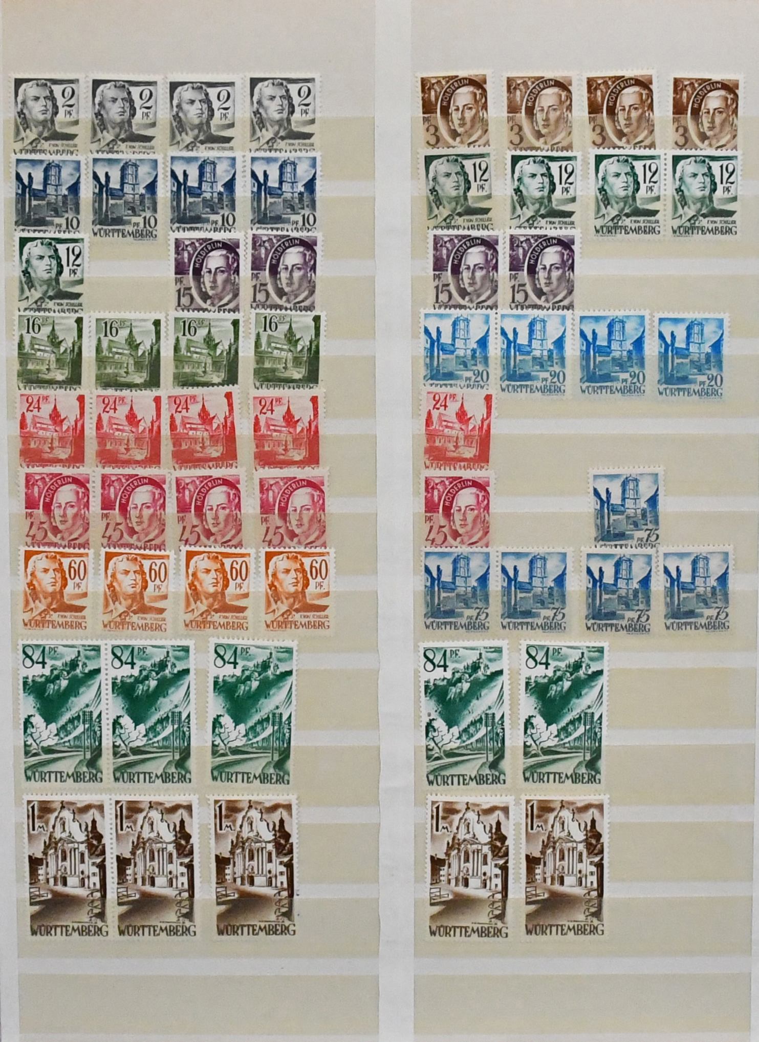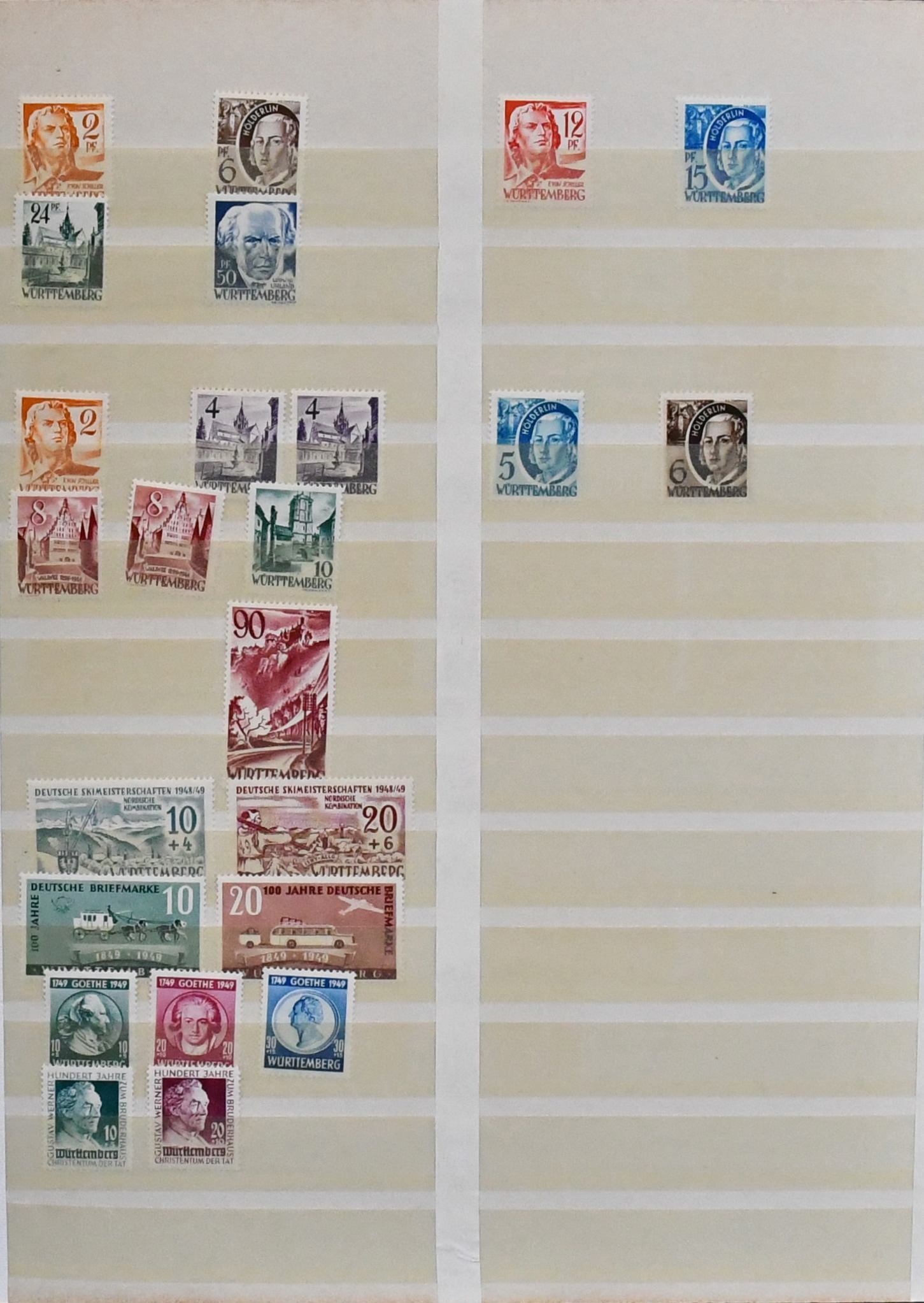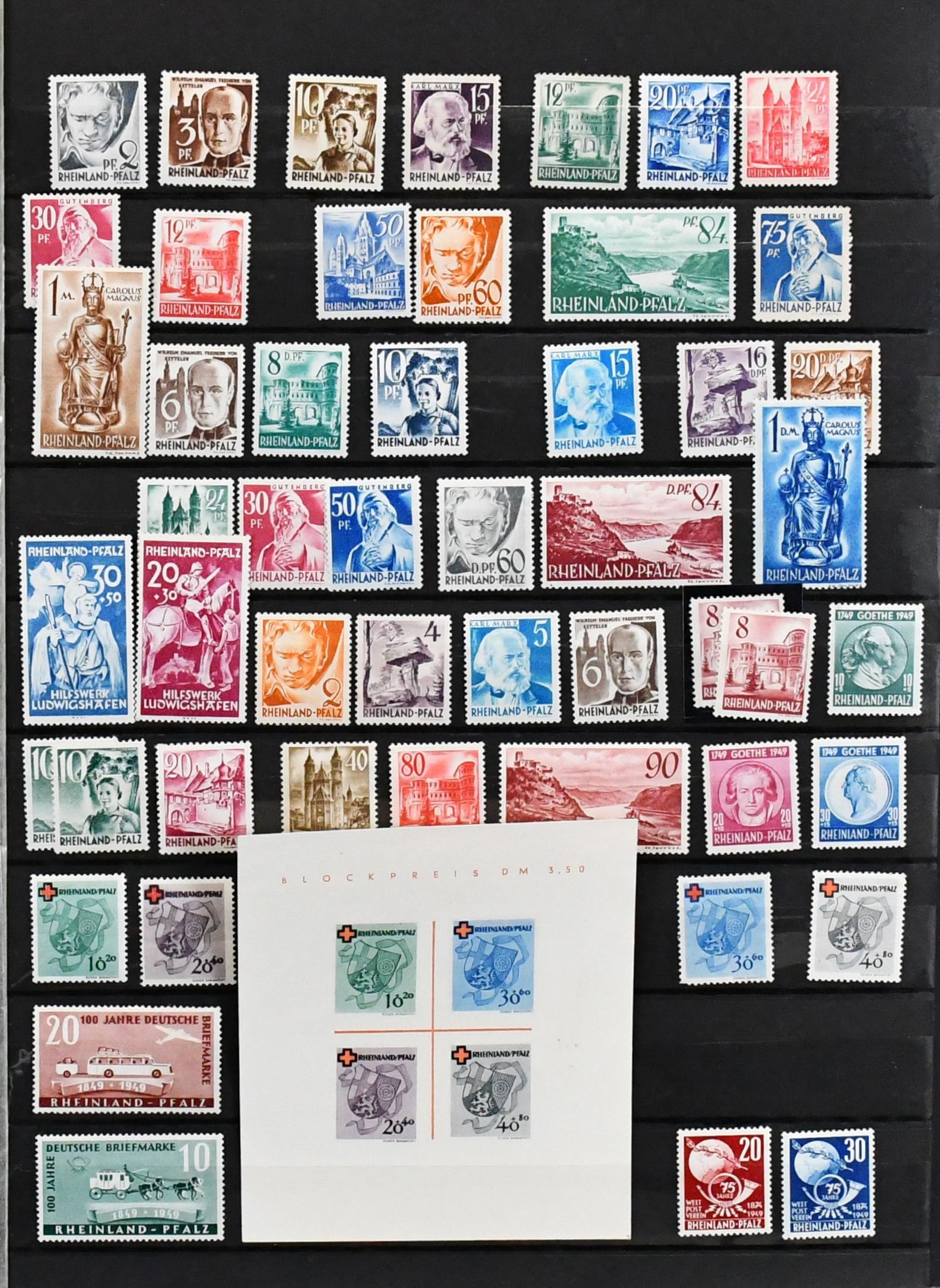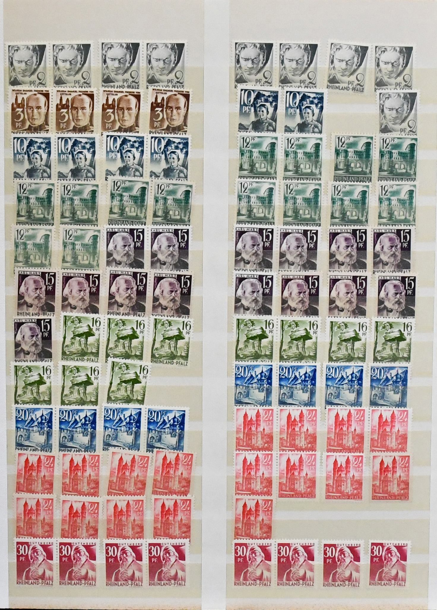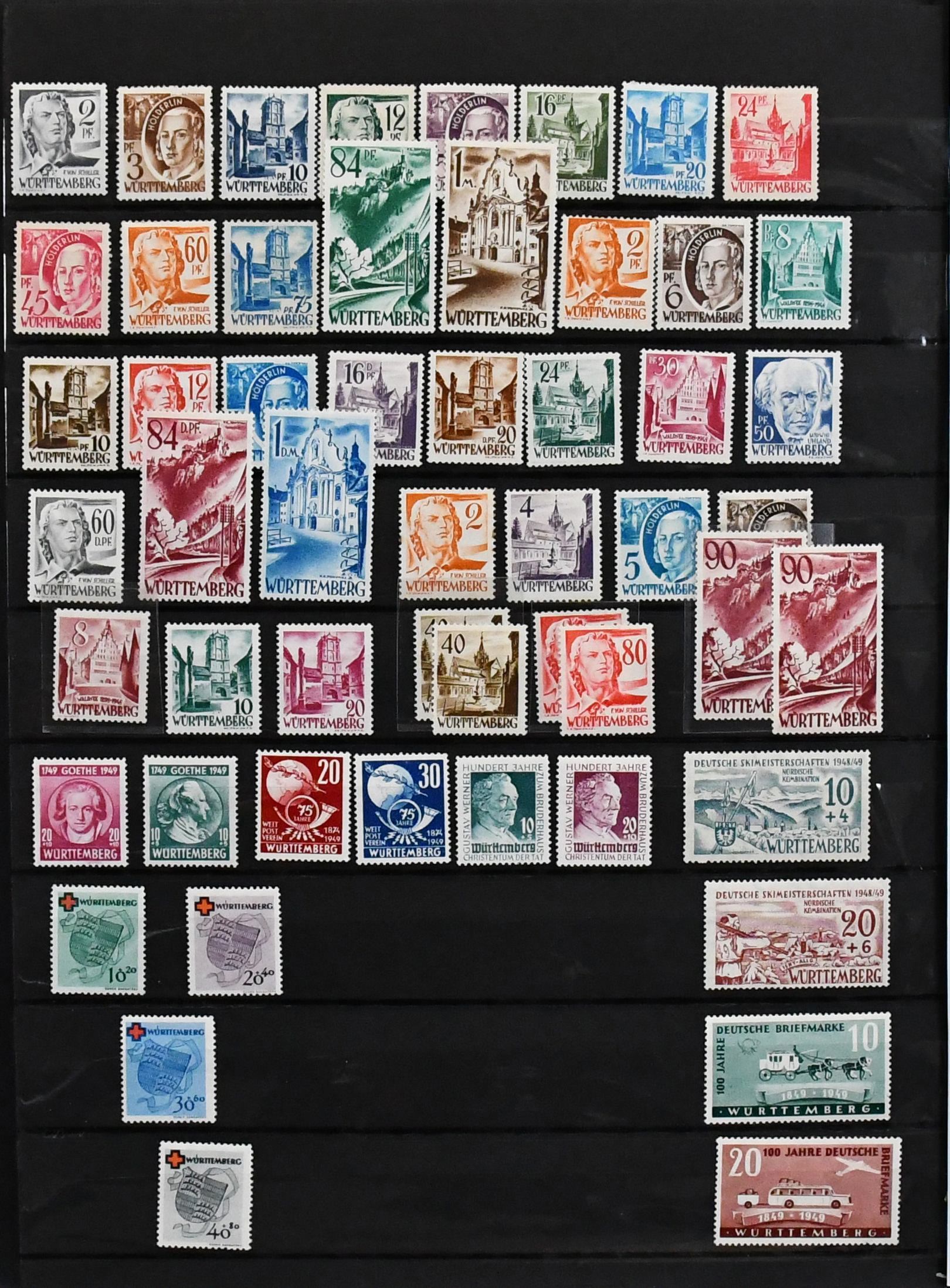 Rheinland-Pfalz, postfrische Slg. mit Nr. 1-29, 32-52, Bl. 1, ferner Nr. 30-31 gest., sowie Württemberg mit Nr. 29-37 postfr., 38-39 gest. etc.