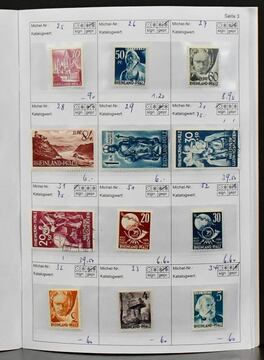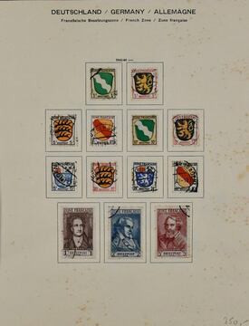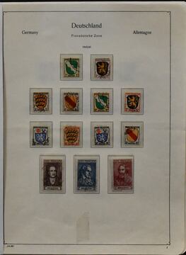 Französische Zone, 1945/1949, gest. Slg. mit vielen besseren Ausgaben, auf älteren KABE-Vordrucken. Dabei Allgem. Ausgabe Nr. 1/13, Baden Nr. 1/57 und Bl. 1B, Rheinl.-Pfalz Nr. 1/31, 46/52, Württemberg Nr. 1/39, 44/52 etc., alle Stempel ungeprüft und daher vorsichtig taxiert