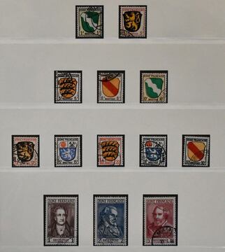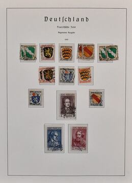 Französische Zone, 1945/49, gest. Slg. mit Allg. Ausgabe Nr. 1/13, Baden Goethe-Satz, Nr. 54/57, Rheinl.-Pfalz Nr. 42/43 u. 48/52, Württemberg Nr. 28/37 usw., auf Leuchtturm-Vordrucken. Mi. 1500,-