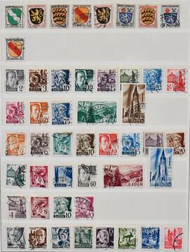 Französische Zone, 1945/49, gest. Slg. mit etwas Baden, Rheinland-Pfalz Nr. 1/45A (Mi. 1179,-), sowie Württemberg Nr. 1/36 (Mi. 140,-), dazu ein nachgestempelter Block 1 unberechnet