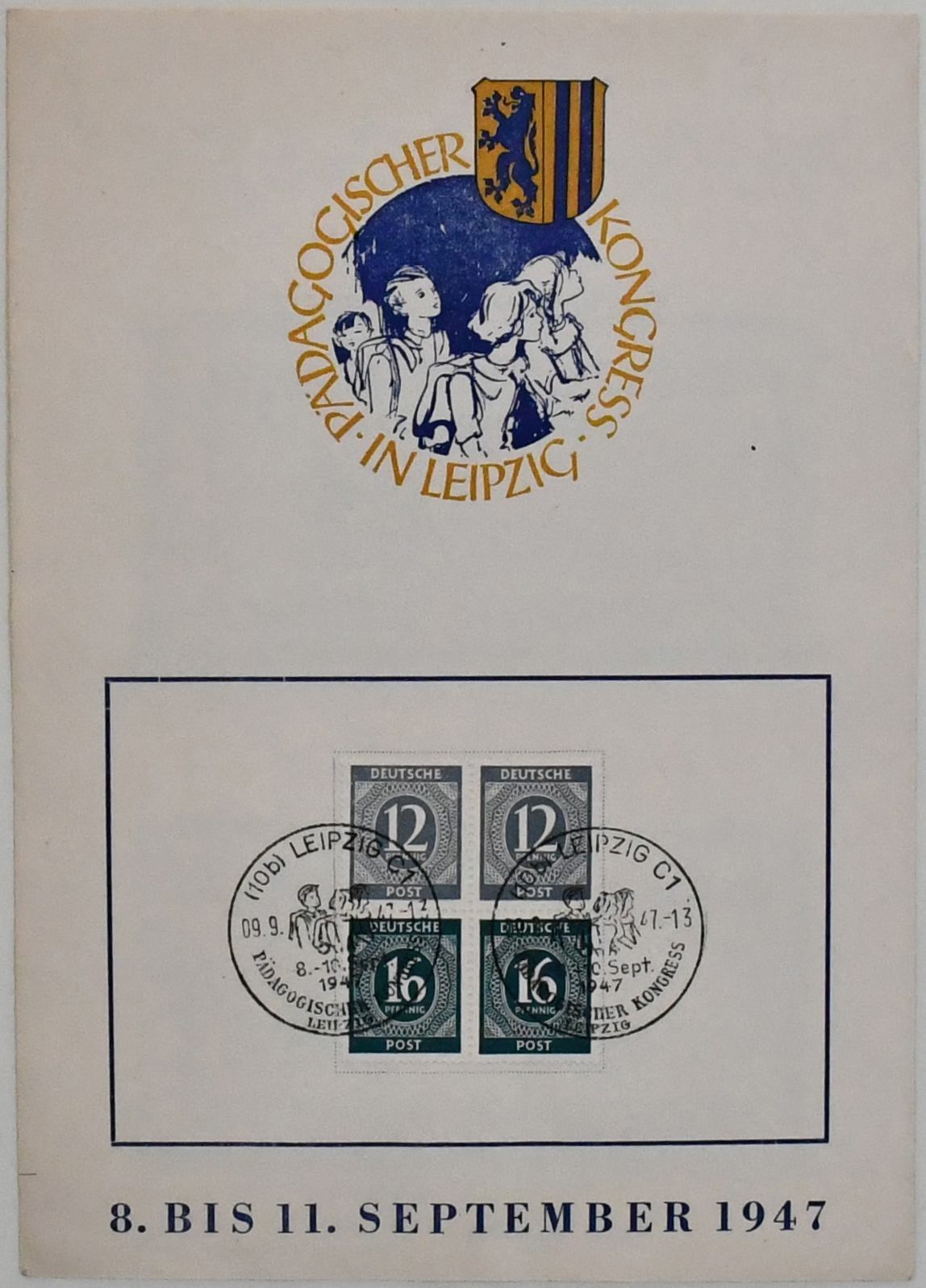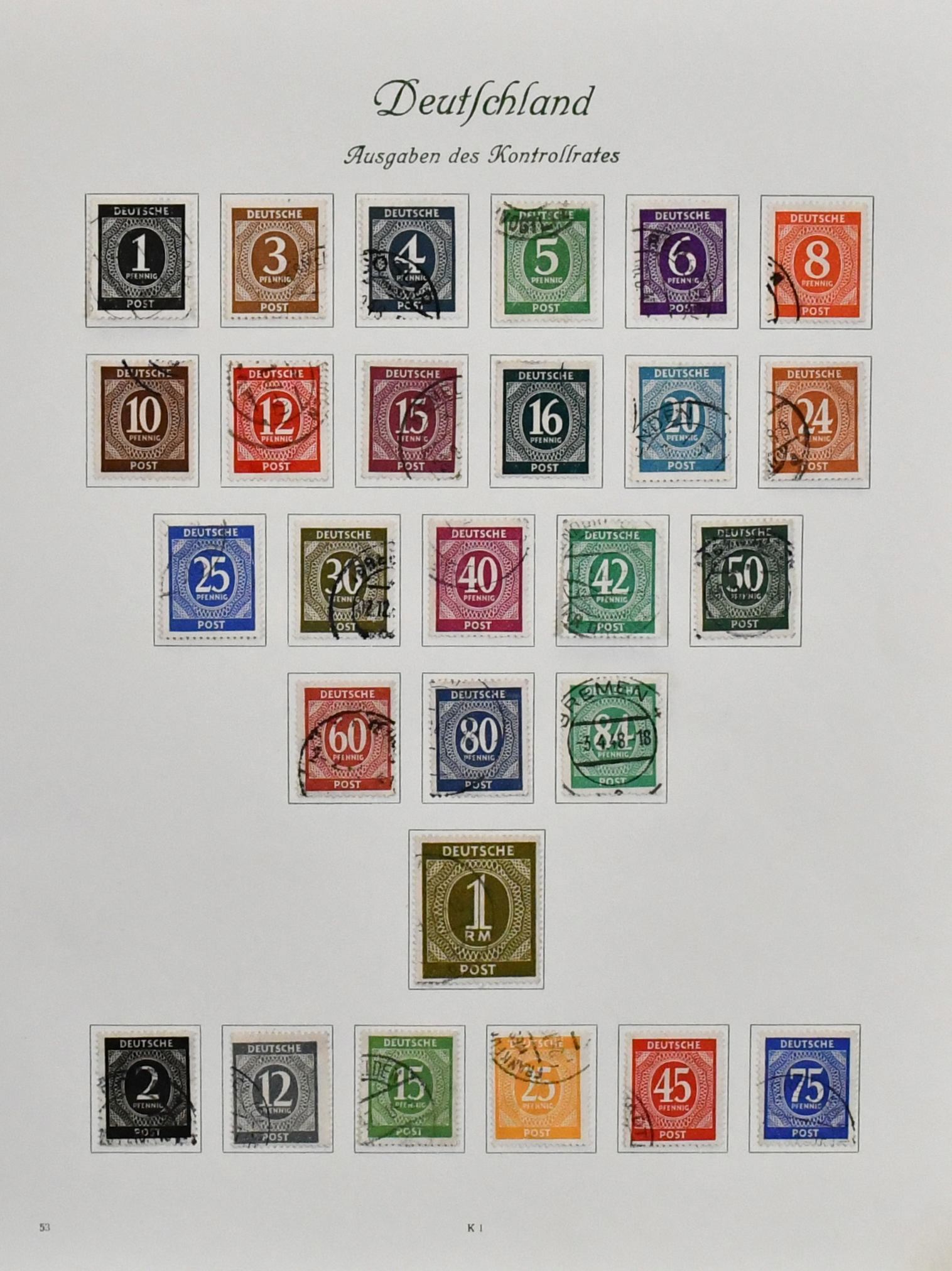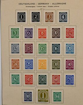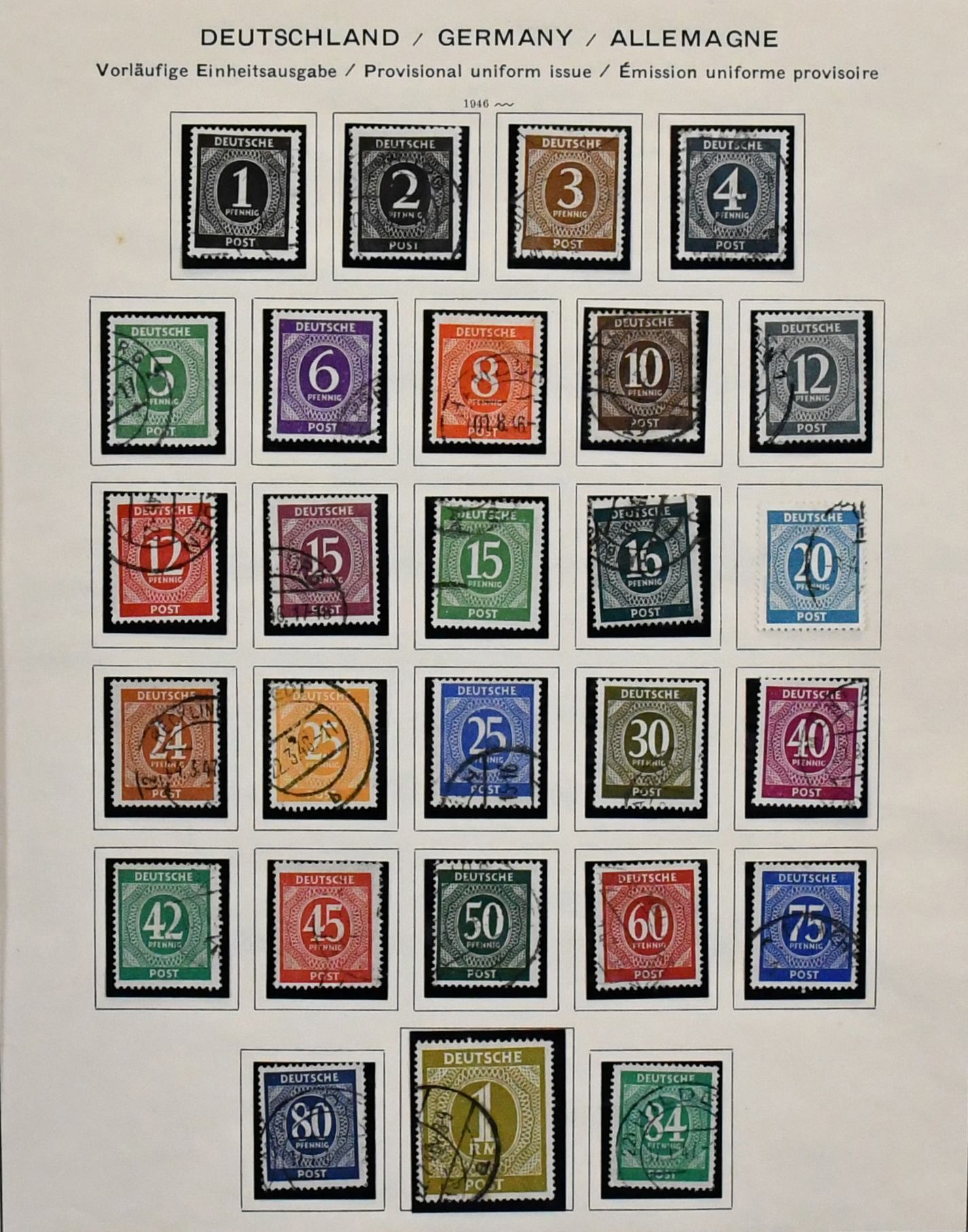 Gemeinschaftsausgabe, 1945/49, gest. kpl. Slg. inkl. Bl. 12A/B mit SST (Mi. 420,-), VZd1 auf Gedenkblatt usw., auf Vordrucken