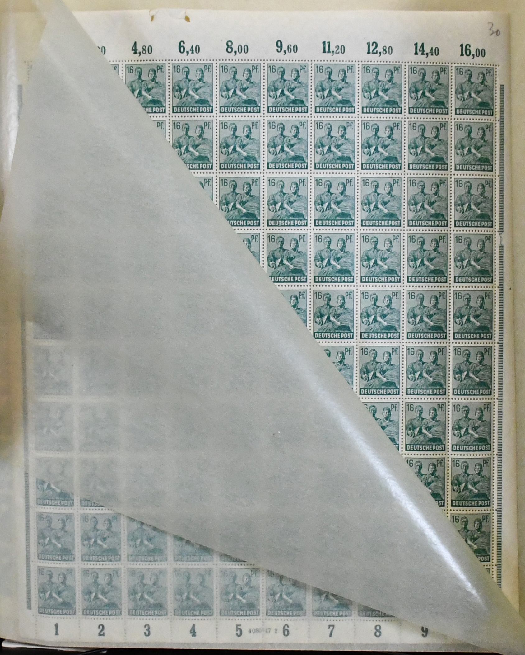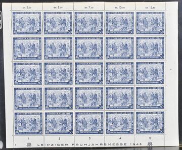 Gemeinschaftsausgabe, Partie von 22 postfrischen Bogen, dabei zweimal Nr. 961, sonst fast nur Leipziger Messe, u.a. drei Bogen Nr. 967 mit Druckerzeichen (Mi. 210,-) usw.