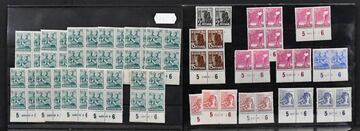 Gemeinschaftsausgabe, Arbeiter, etwa 1200 Werte in postfrische Einheiten bis zum kompletten Bogen, dabei Hausauftragsnummern bis 120,- Mi., Nr. 945 mit Druckerzeichen usw.