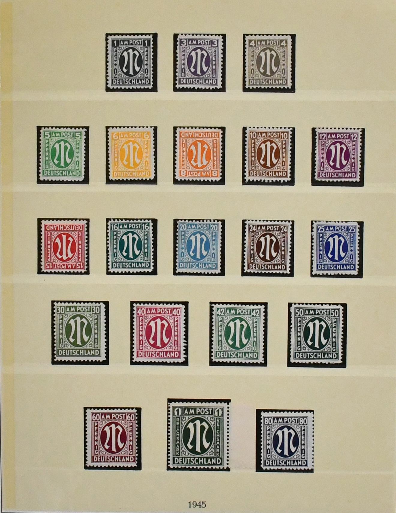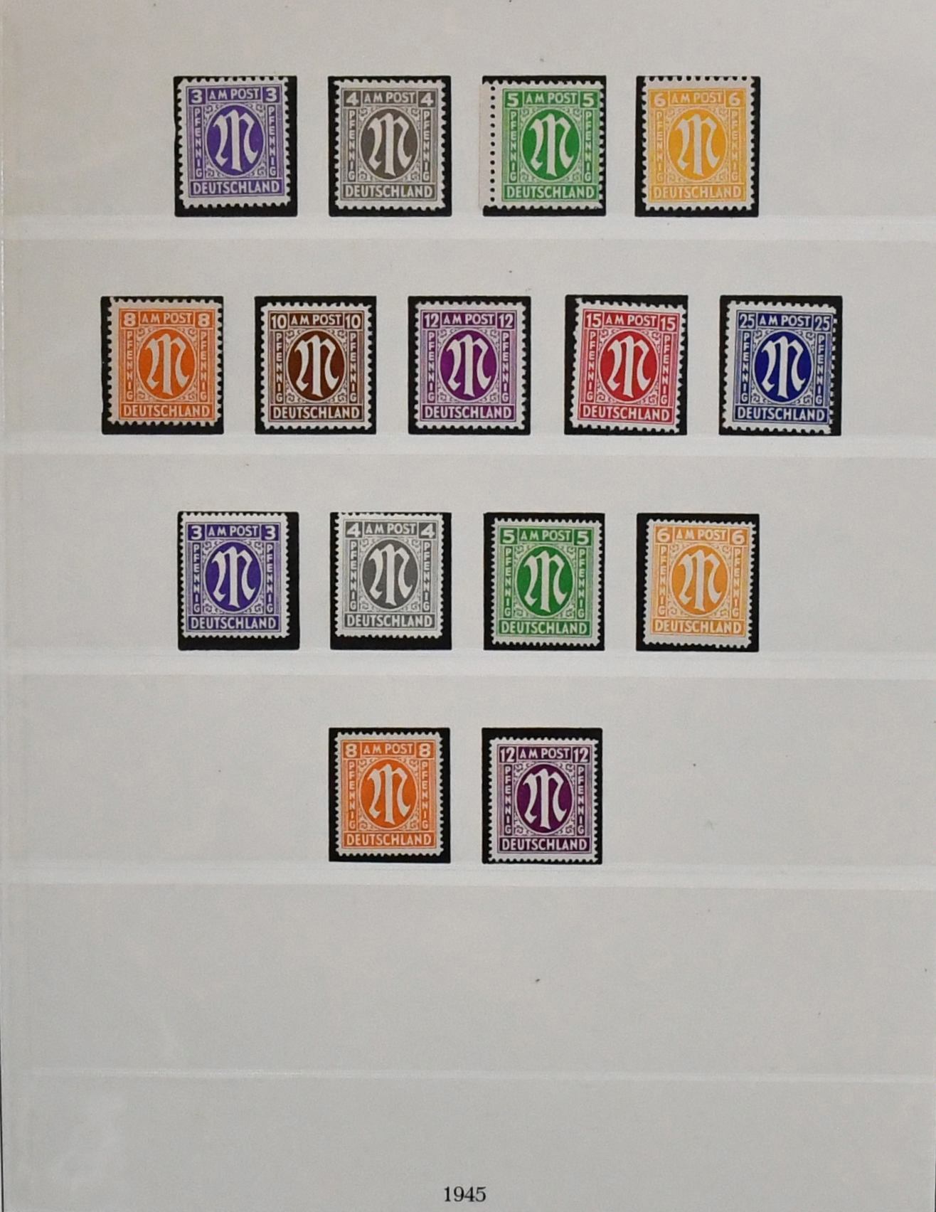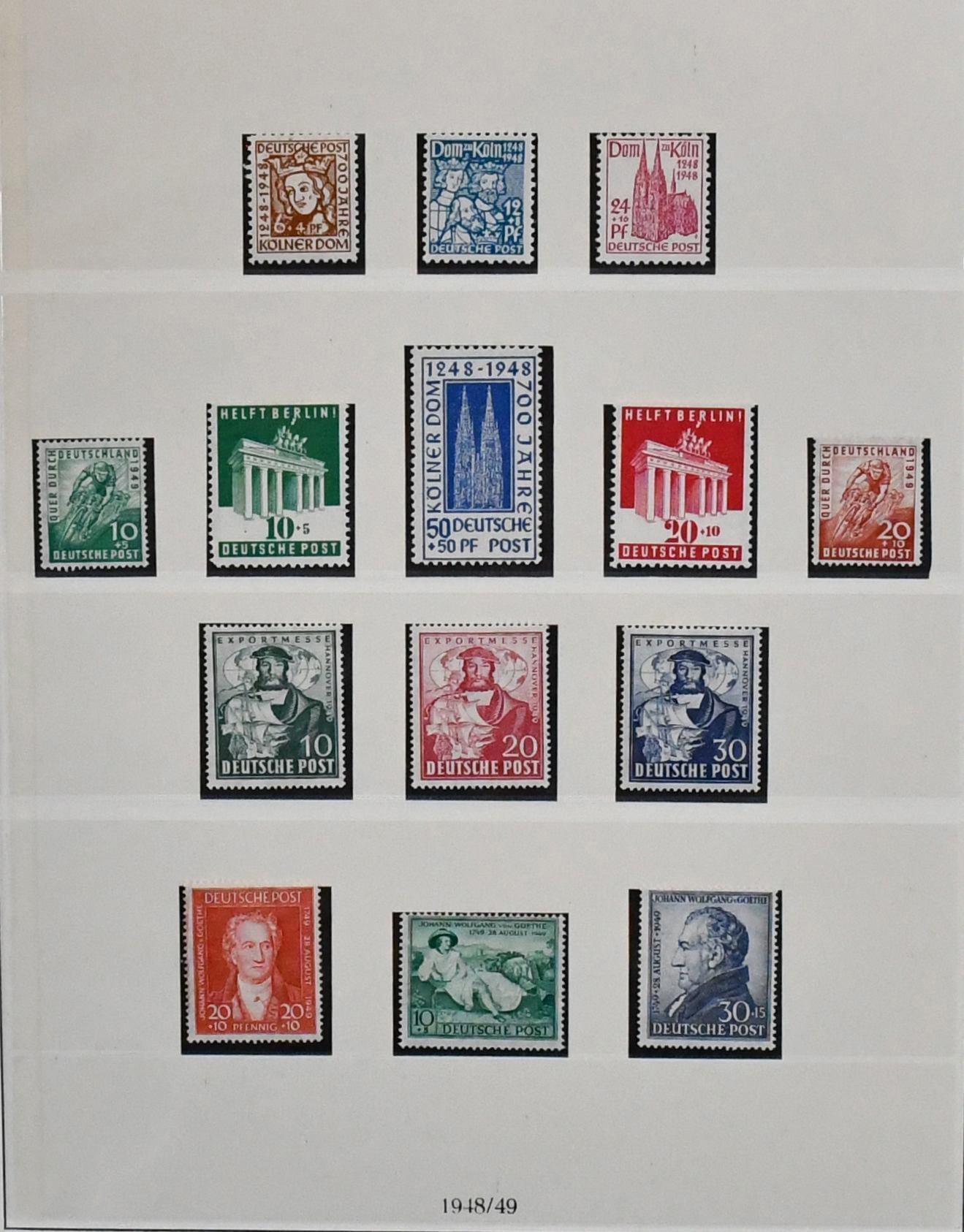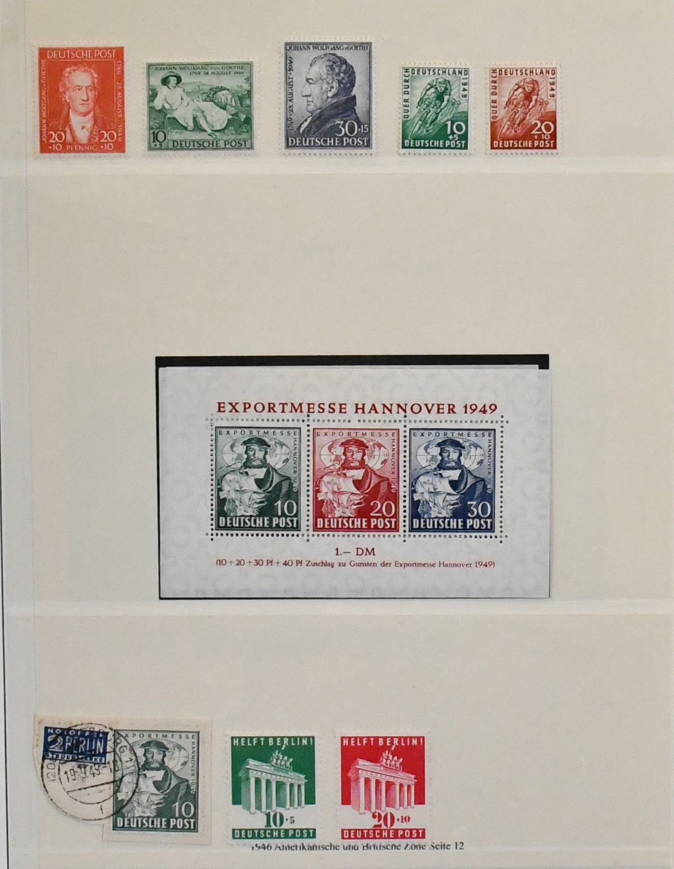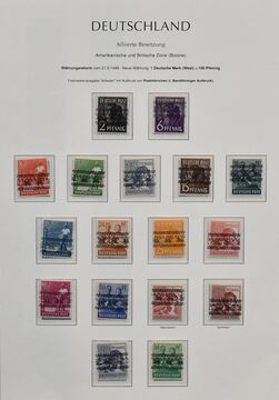 Bizone, 1945/49, meist postfrische Slg. ex Nr. 1/110, lediglich ohne Nr. 52/68, kpl, auf Vordrucken. Dabei Nr. 36/51I/II (Mi. 153,-), 73/100eg und wg (Mi. ca. 1000,-), Bl. 1, Nr. 101/10 usw.