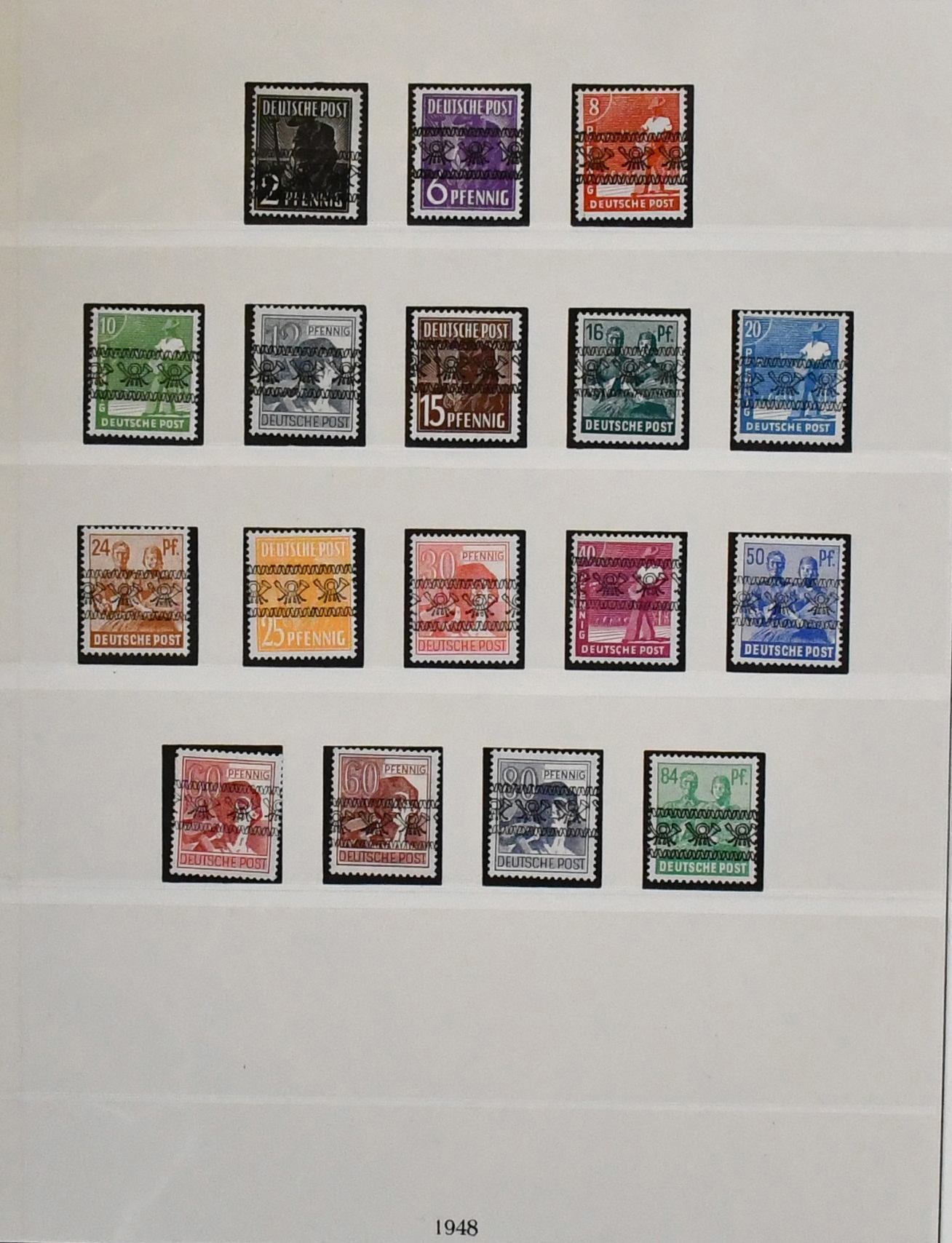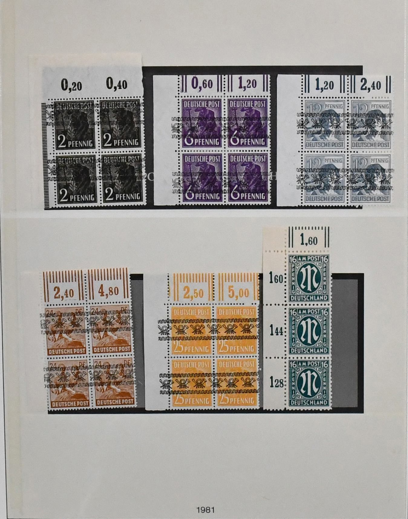 Bizone, Band-/Netzaufdrucke auf Arbeiter-Serie, postfrischer, spezialisierter Sammlungsbestand auf Blättern, neben den Standardserien auch Besonderheiten mit Nr. 49Ia, gepr. Schlegel, 36I Unterrandstreifen mit HAN, gute Oberränder Platte/Walze, z.B. Nr. 41IIdgz, 46IIdgz, 40I Platte Ecke 1 mit DZ "positive 1" etc.
