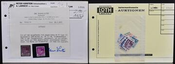 AM-Post, spezialisierte Steckkarten-Partie, sortiert nach Zähnungen, insbesondere deutscher Druck. Dabei Nr. 5 PF I, III/V teils mehrf. (Mi. 144,-), Nr. 9 PF II, 10VI, 12F per zwei, 13 PF III, 14G mehrf. usw. Mi. rund 3000,-. Dazu drei Handbücher der ArGe