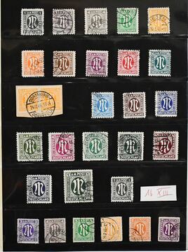 AM-Post, Partie von rund 800 postfr. u. gest. Werten ex Nr. 1/35, alle nach Papiersorten und Zähnungen spezialisiert. Der wertmäßige Schwerpunkt liegt bei den gest. Werten, inkl. Nr. 10G, Nr. 12 mit zehn Werten, 14G mehrf., viel deutscher Druck, u.a. mit Nr. 19D, 20Ax mehrf., 24C, 26A/D, 27A/C, 32/33 mehrf., alles gestempelt, Nr. 34 fünfmal postfr., usw. Mi. 6000,-