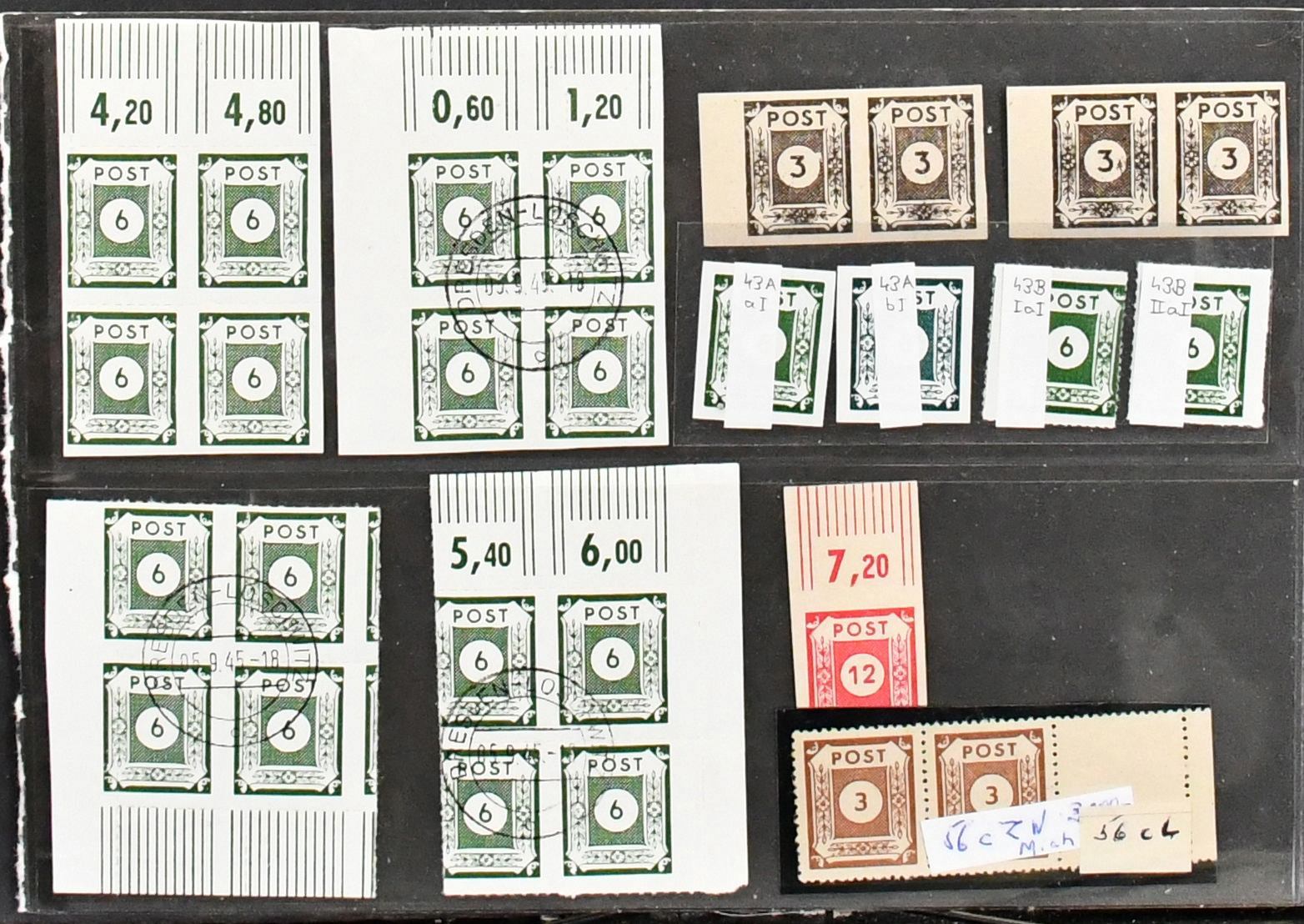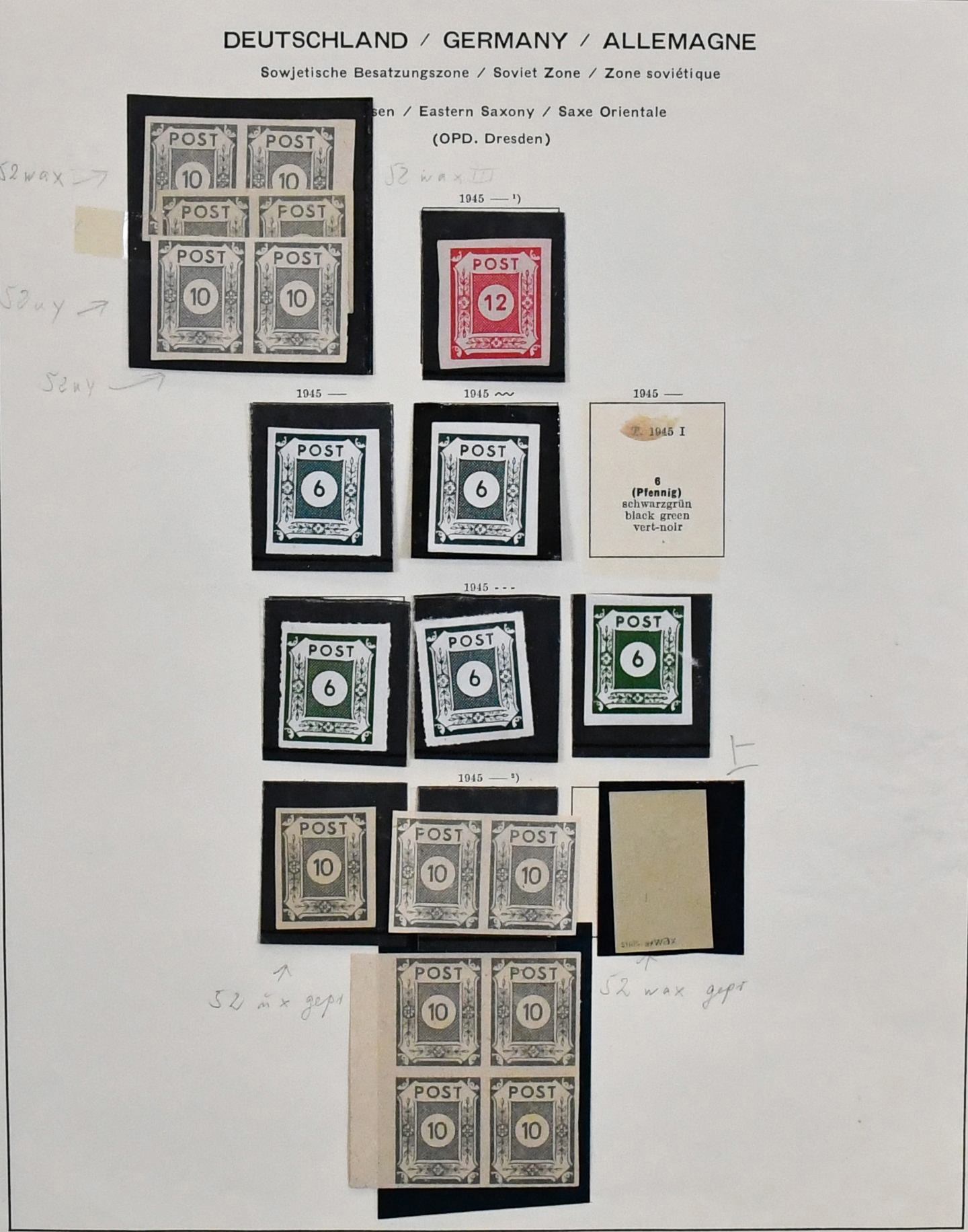 Ost-Sachsen, Zusammenstellung mit u.a. 42mal Nr. 43, u.a. achtmal mit vollem Mittelstück, vielfach durchstochen, Nr. 43C im postfr. Bogenecken-Dreierstreifen (mit Altsignatur, Mi. 720,- ++), Nr. 52wax postfr., Nr. 56 mit rechts anhängendem Leerfeld usw. Hoher vierstelliger KW