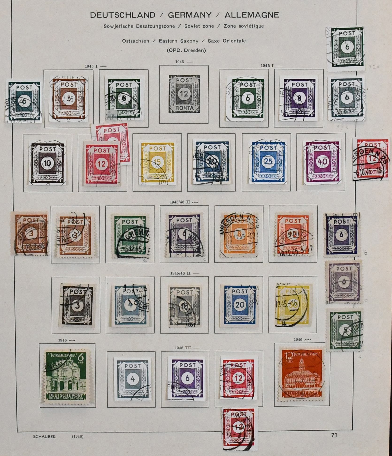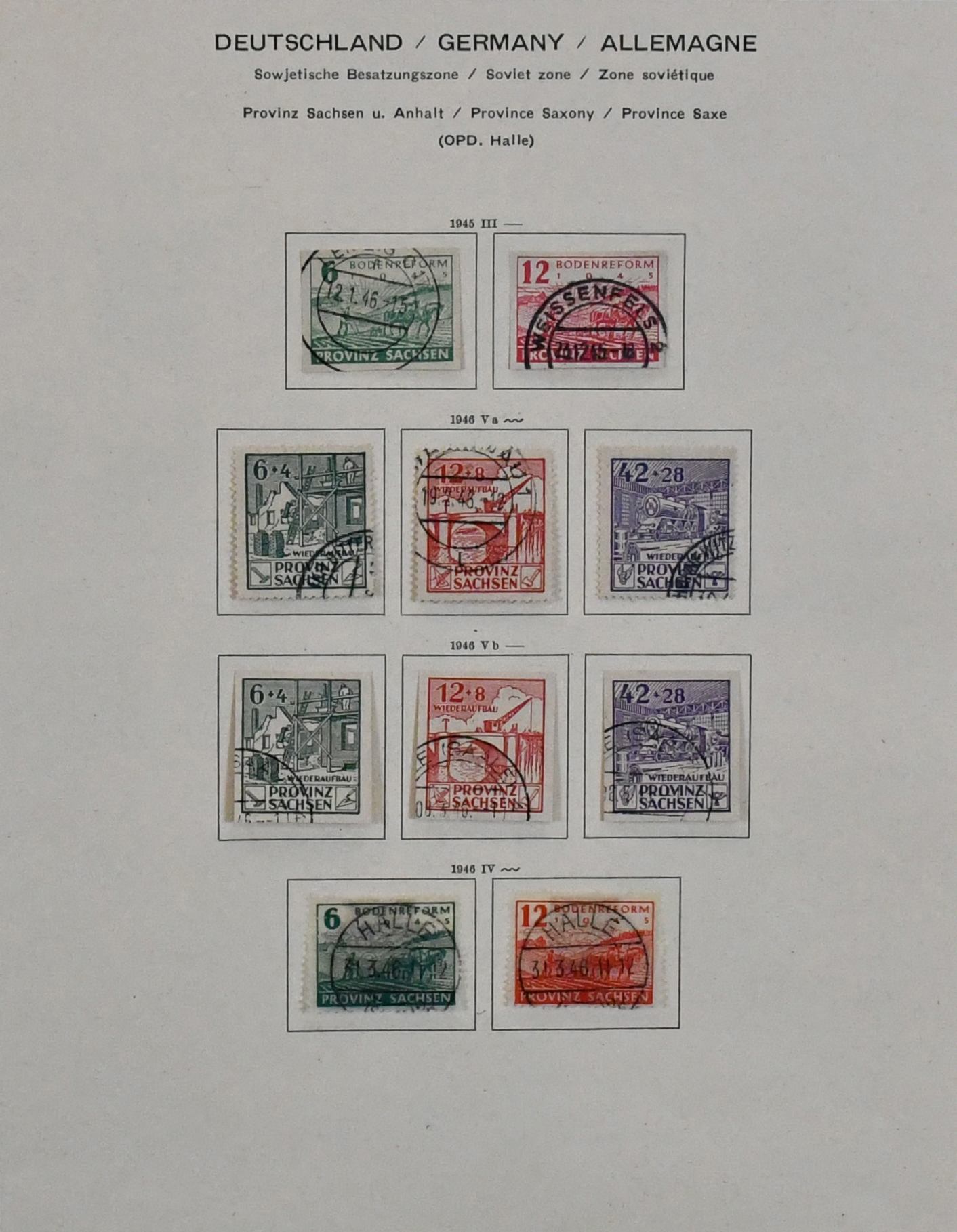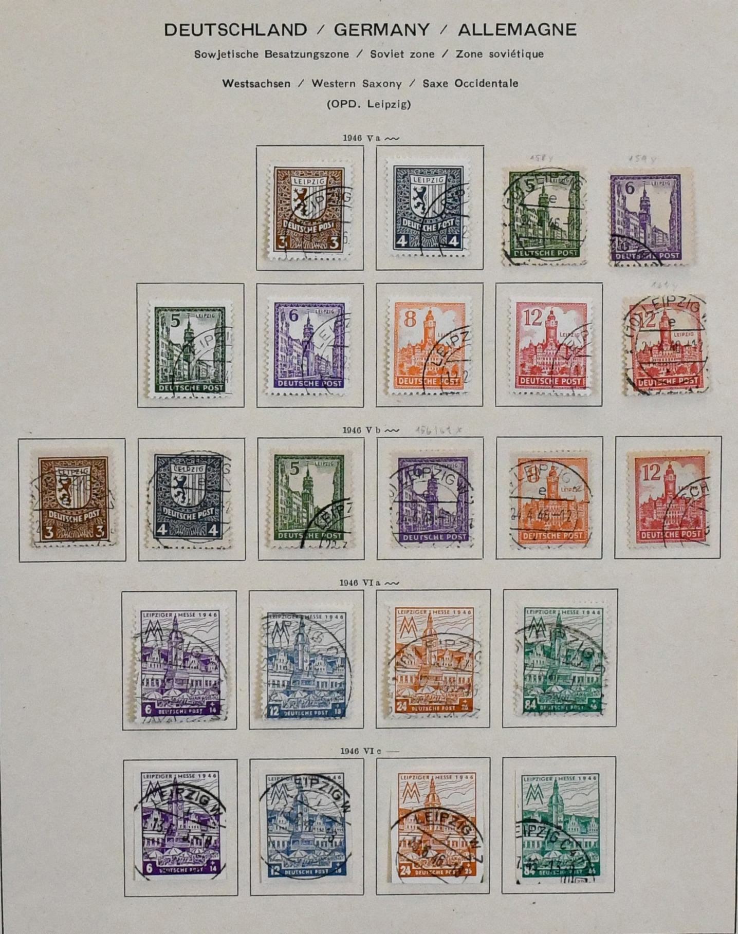 SBZ, umfangreiche, spezialisierte Slg. von rund 700 Werten ex Nr. 1/165, im E-Buch. Dabei 60 Werte ex Nr. 1/7, Nr. 26/40y gest. (Mi. 480,-), 72 gest. (250,-), 87/89B gest. (180,-), viele Werte ex Nr. 92/99, 116/19Y gest., 120/23X postfr. u. gest. etc. Mi. 2500,-