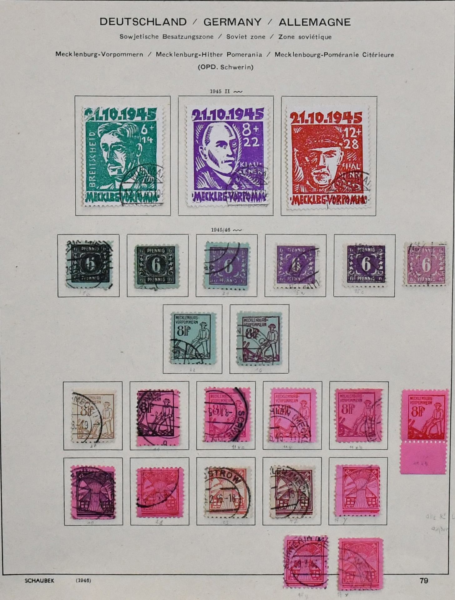 SBZ, 1945/49, gest. Slg. mit vielen kpl. Sätzen ab Nr. 1/19, auf alten Schaubek-Vordrucken. Dabei u.a. Nr. 20/28 (Mi. 580,-), 29/40y (Mi. 300,-), 66/72, 120/25X (440,-) usw. Mi. rund 2000,-, wobei einiges vorsichtig bewertet wurde