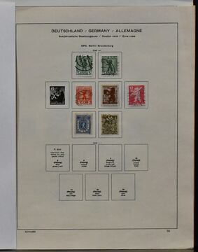 SBZ, 1945/49, gest. Slg. mit u.a. Nr. 20/25 (Mi. 400,-), 42/50, Bl. 3B (220,-), Nr. 112/15, 124/25X/Y, Bezirkshandstempel mit heller 60 Pfg. (ungeprüft) usw., auf Lindner-Vordrucken