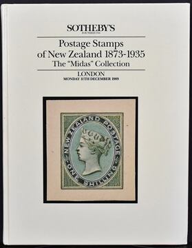 Neuseeland, Sotheby`s, Postage Stamps of New Zealand 1873-1935, The "MIDAS"-Collection 1989, Auktionskatalog mit über 1400 Losen und Hardcover-Umschlag