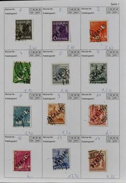 Berlin, 1949/1990, Slg. mit Rotaufdruck sauber gest. (Mi. 900,-), sonst alles postfrisch, inkl. Nr. 64/67, 75/81, 112/13 usw. Mi. 2600,-, Los 8089 der 217. Auktion, alter Ausruf 200,-
