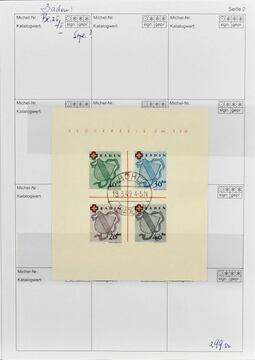 Französische Zone, gestempelter Sammlungsteil, wobei wir für die ungeprüften gest. Bl. 2 von Baden und Bl. 1 von Rheinland-Pfalz keine Garantie übernehmen! Dabei bessere Ausgaben wie Rh.-Pf. Nr. 46-52 etc., Los 7946 der 217. Auktion, alter Ausruf 180,-