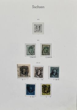 Sachsen, meist gest. Slg. auf Leuchtturm-Vordrucken, dabei Nr. 2(2), 3-7, 12a/b, Los 7344 der 228. Auktion, alter Ausruf 60,-