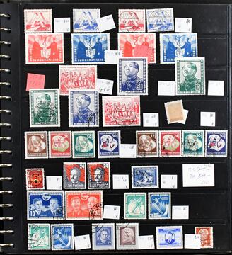 DDR, 1949/90, gestempelte, ab Nr. 242 (bis auf drei Werte ex Nr. 327/41) nahezu kpl. Slg., mit Bl. 7, allen vier Marx-Blöcken, Bl. 10/19, Nr. 261/70, 286/88 usw., in vier Vordruckalben. Mi., alles billigst als Gefälligkeitsentwertung gerechnet, bereits 4400,-, Los 7357 der 214. Auktion, alter Ausruf 350,-
