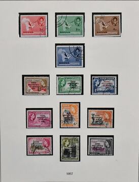 Ghana, von 1957-1967 kpl. Slg., mit den Ausgaben bis Anfang 1961 gest., und später postfrisch, im Lindner-Vordruckalbum