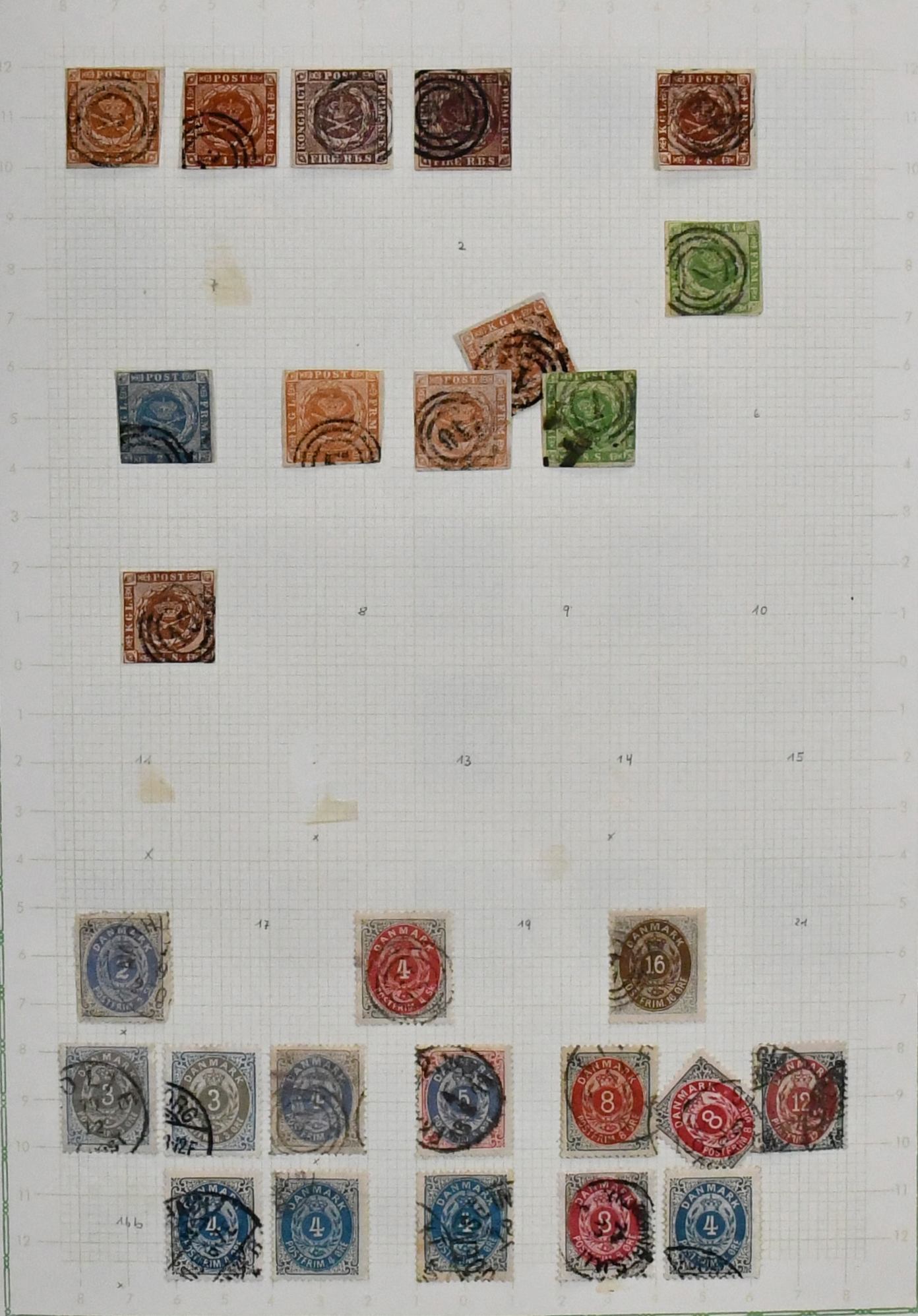 Dänemark, 1854/1954, Slg. ab Klassik, mit Nr. 4/5, 22/30, meist mehrf., inkl. Nr. 24 per zwei, 47/59, 61/62 gest., 67/76 gest., 97/109, 116/17 gest. (Mi. 120,-), 131/42, 175/79, Porto Nr. 1/19 gest. usw., auf Vordrucken. Mi. 1600,-