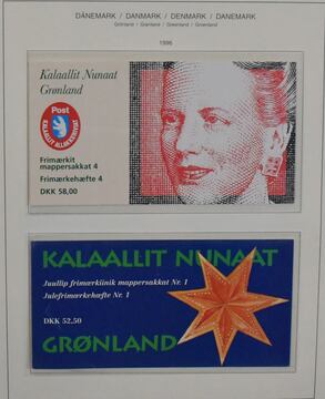 Grönland, 1972/1989-2004, Sammlung mit 19 Markenheftchen ab Nr. 1, 52 Blocks, teils gest., im Schaubek-Album, teils Vordruck, Postpreis 1645,- DKr. = 214,- Euro