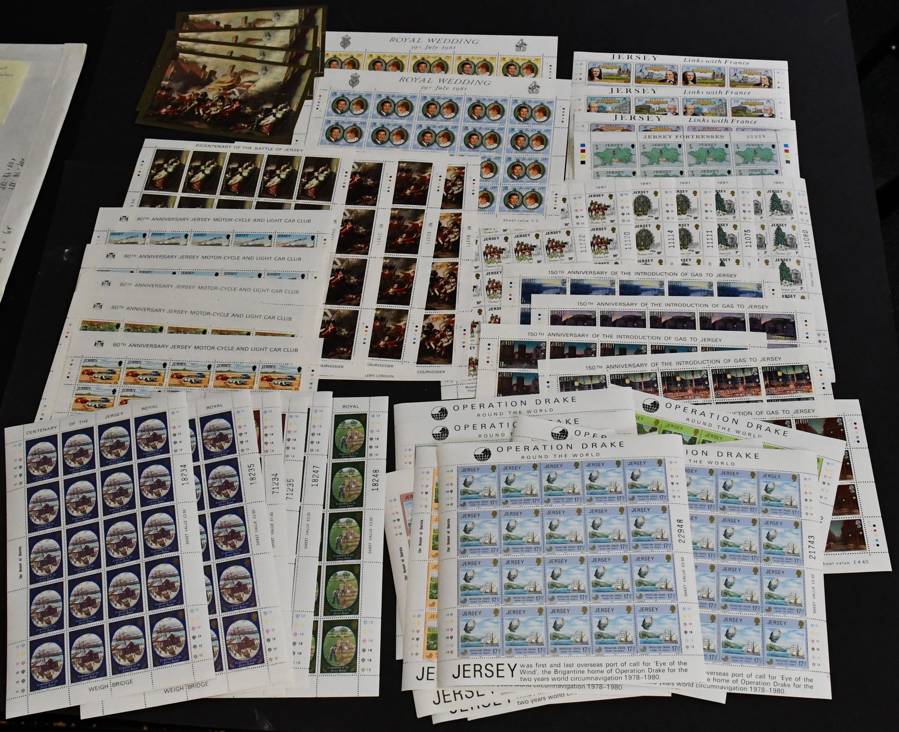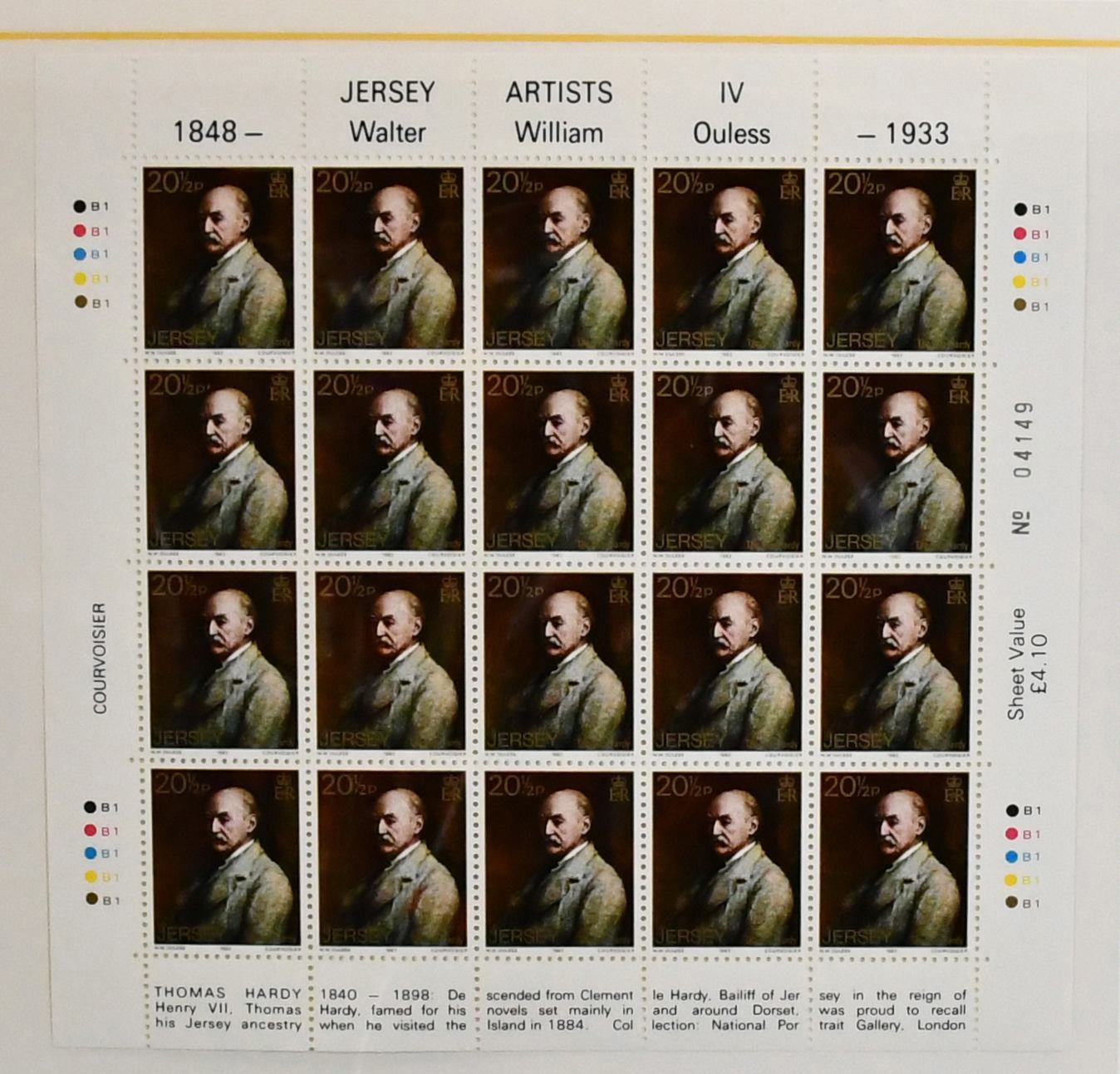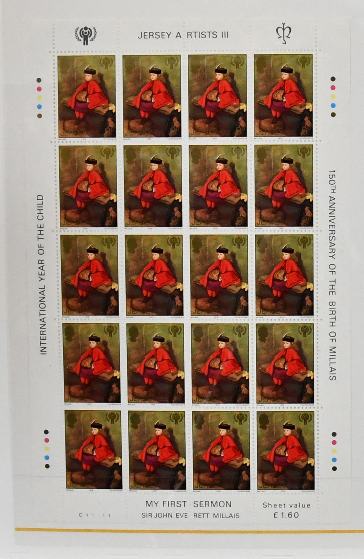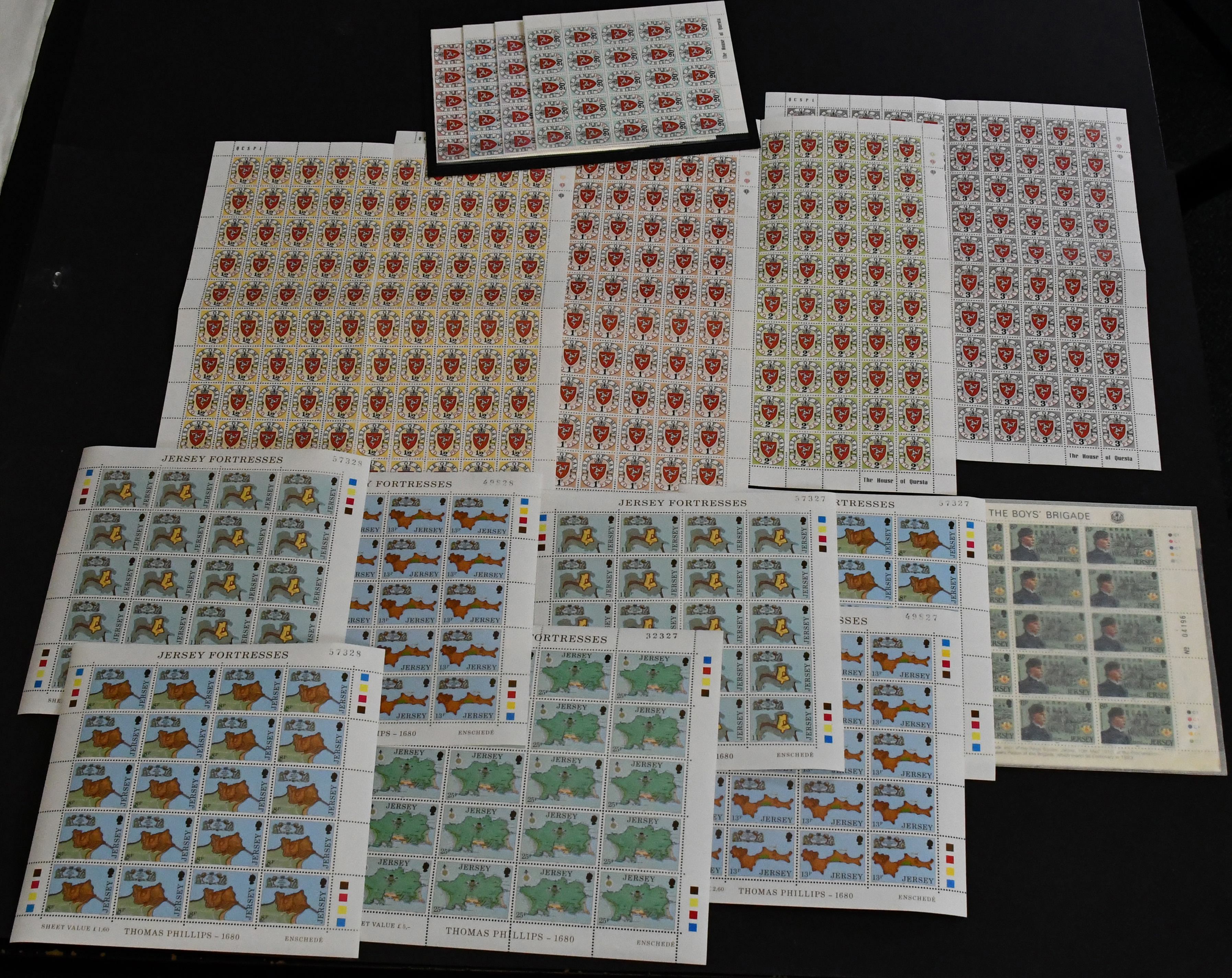 Jersey, postfrische Sammlung von über 150 versch. kpl. Bogen der 70er/80er Jahre mit 600,- Pfund (= 680,- Euro) Nominalwert, in zwei Ringbindern