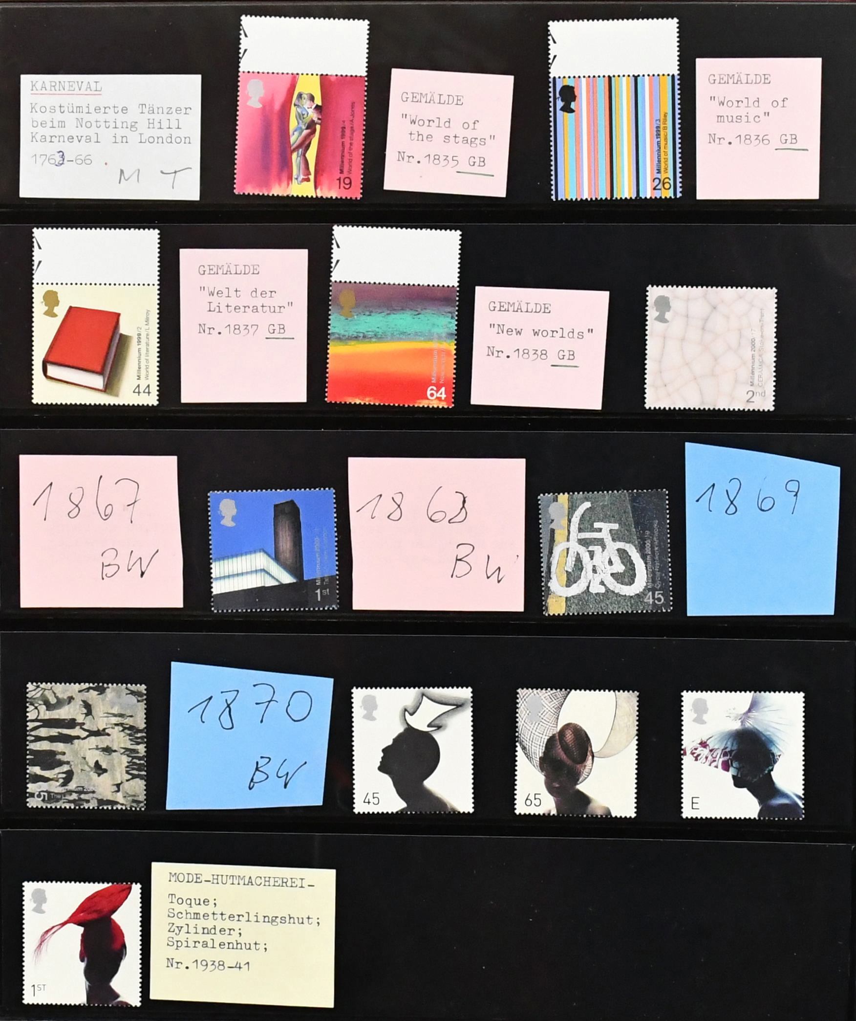 Großbritannien, 1948-2004, postfrische Slg. in zwei Bindern, u.a. auf Steckseiten nach Motiven sortiert, auch MH, vor 1948 einiges gest., unübersichtlich, sehr hohe gültige Nominale