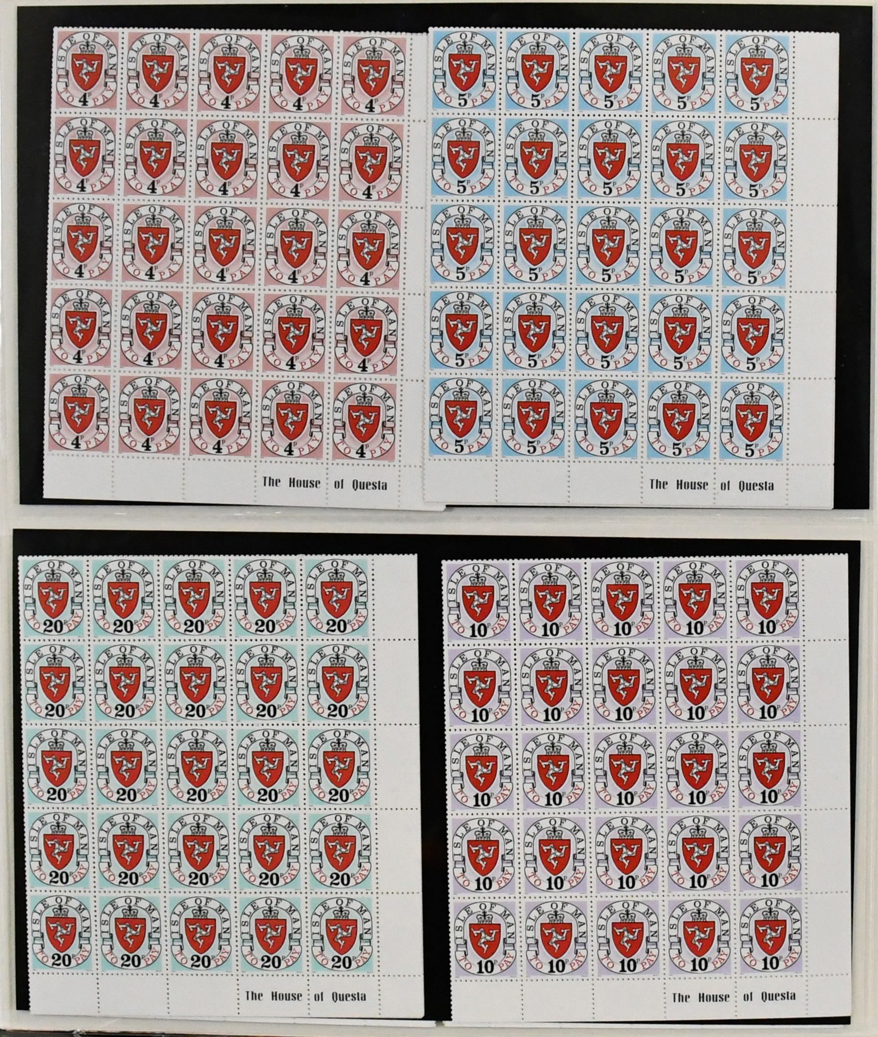 Kanalinseln, Partie von über 60 postfrischen Bogen, dabei u.a. Insel Man Porto gute Nr. 1/8I im üblich gefalteten Bogensatz, alle Marken tadellos (Mi. lose 4500,-), sowie sonst nur Jersey-Bogen
