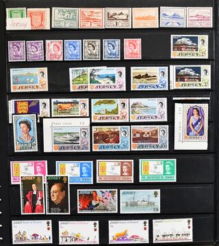 Jersey, postfrische, von 1958-1998 komplette Sammlung, zusätzlich diverse Markenheftchen, ferner Deutsche Bes. II. Wk. Jersey Nr. 1/8. Mi. 1100,-