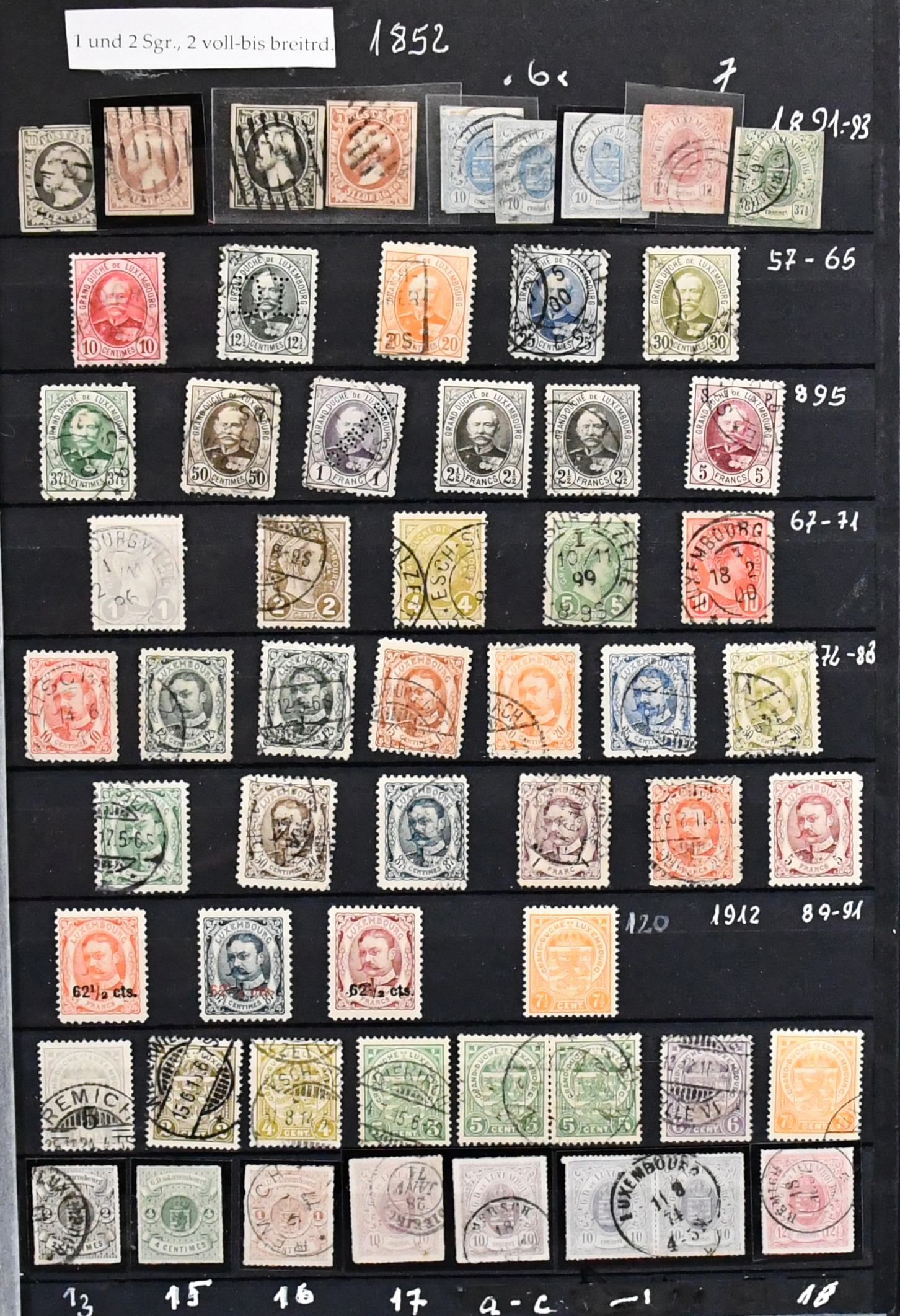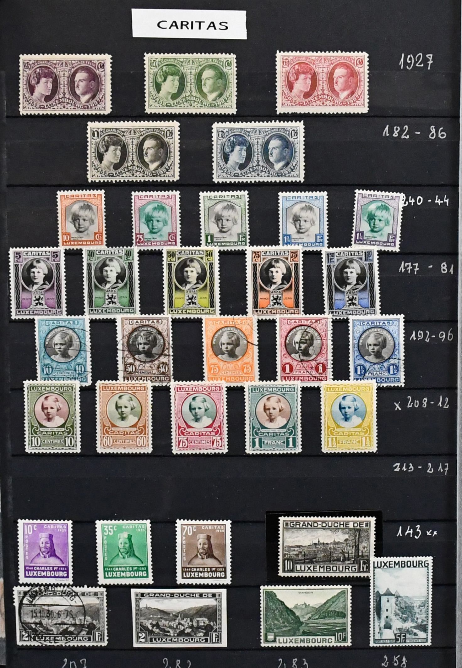 Luxemburg, 1852/1982, Slg. ab Klassik, beginnend mit zweimal Nr. 1/2, im dicken Album. Dabei Nr. 7, 57/66 gest., 72/83, viele Caritas-Sätze ab 1924, u.a. Nr. 240/44 postfr., 309/14 postfr., Bl. 2/6 postfr., Bl. 7 gest. usw., von 1945-1982 kpl. Mi. 4200,-